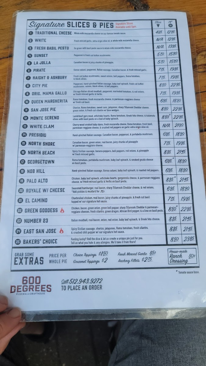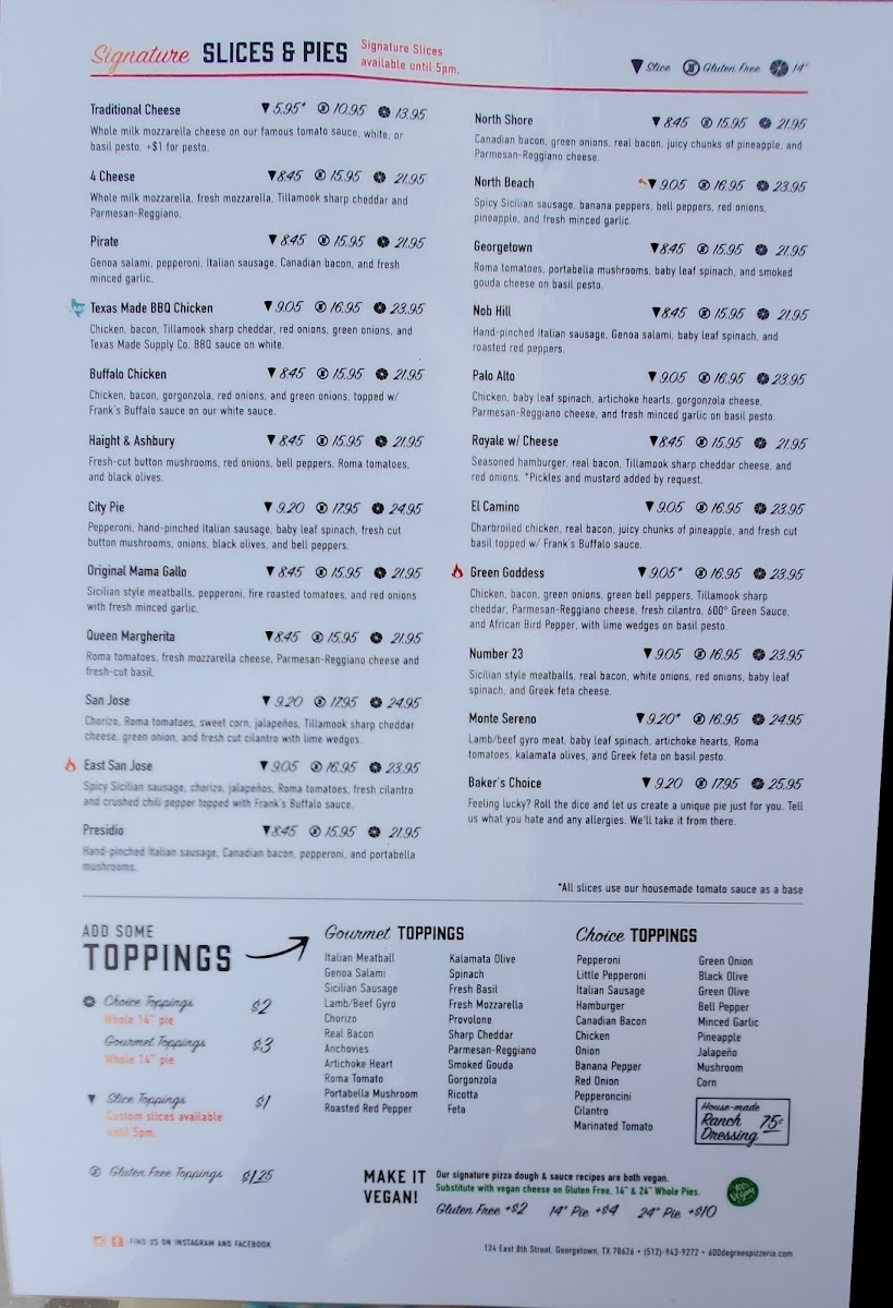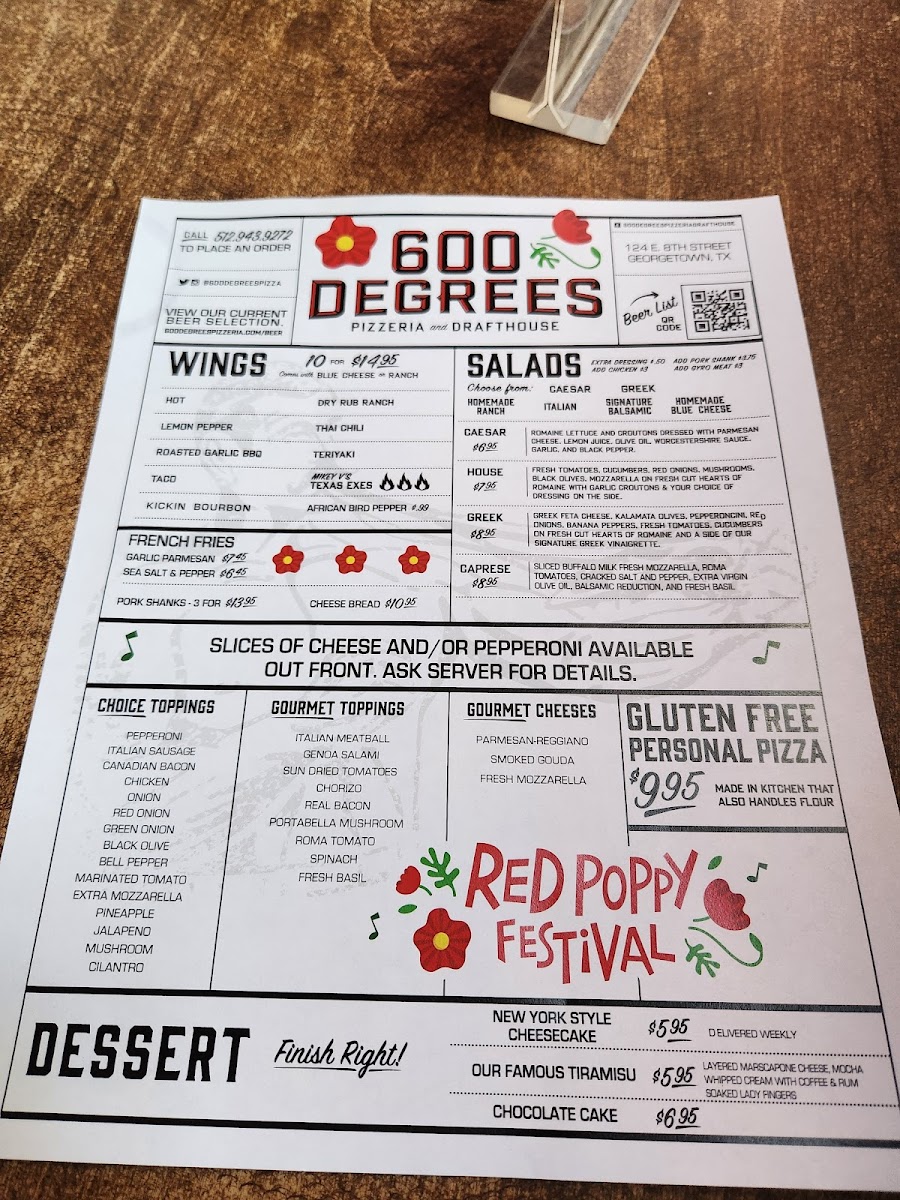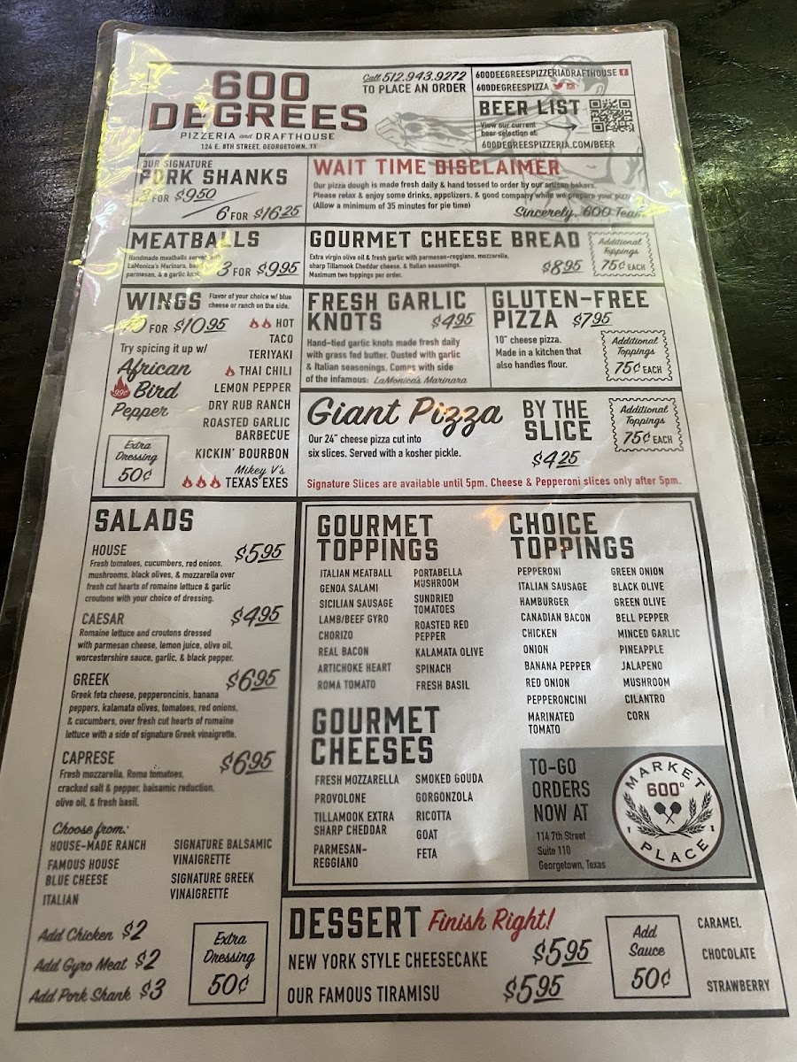 Welcome to 600 Degrees Pizzeria, your go-to destination for amazing pizza in the heart of Georgetown, Texas! Located at 124 E 8th St, this charming pizzeria has quickly become a local favorite, known for its large, delicious slices and welcoming atmosphere.